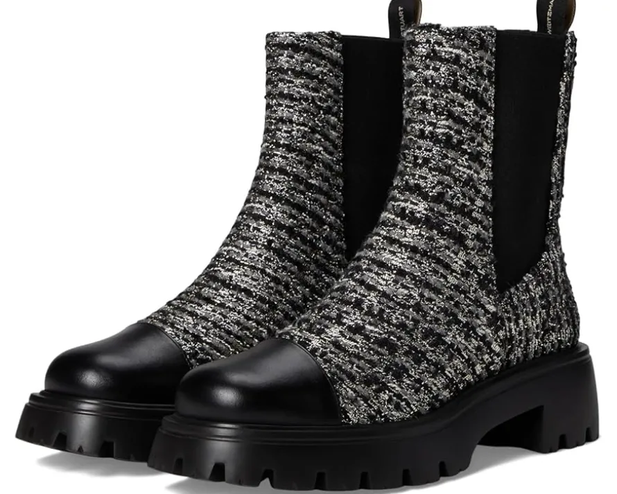 - Treat your feet to the luxurious Stuart Weitzman® Emerson Chelsea Booties. Constructed with premium leather upper and lining, these booties exude quality and style. The leather insole offers a cushioned feel with every step, while the pull-on style and elasticized side goring make them easy to wear. Equipped with a lugged bottom for durability and traction, these ankle-high booties are a versatile option for any occasion.