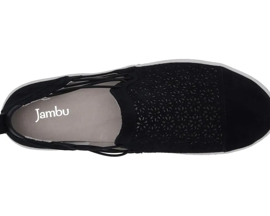 - The Jambu® Erin skate-inspired sneakers feature floral cut-outs and elastic bungee laces for a fashionably, feminine look.