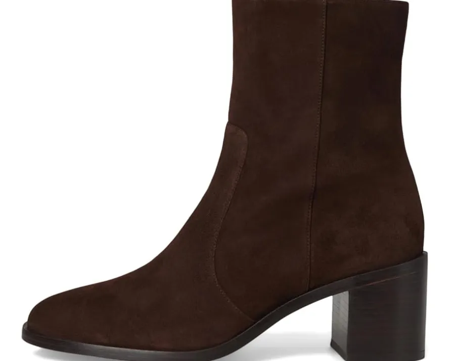 - The Stuart Weitzman® Esme Zip Bootie combines timeless sophistication with modern ease. Crafted from premium leather, this mid-top bootie boasts a sleek leather upper and outsole for a polished look, while the rubber lining ensures a comfortable fit. The luxurious leather insole adds cushioning for all-day wear. Designed for convenience, the pull-on style and side zippered closure make it a breeze to slip on and off.