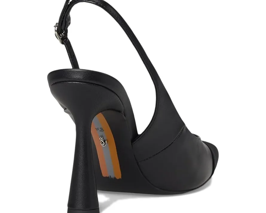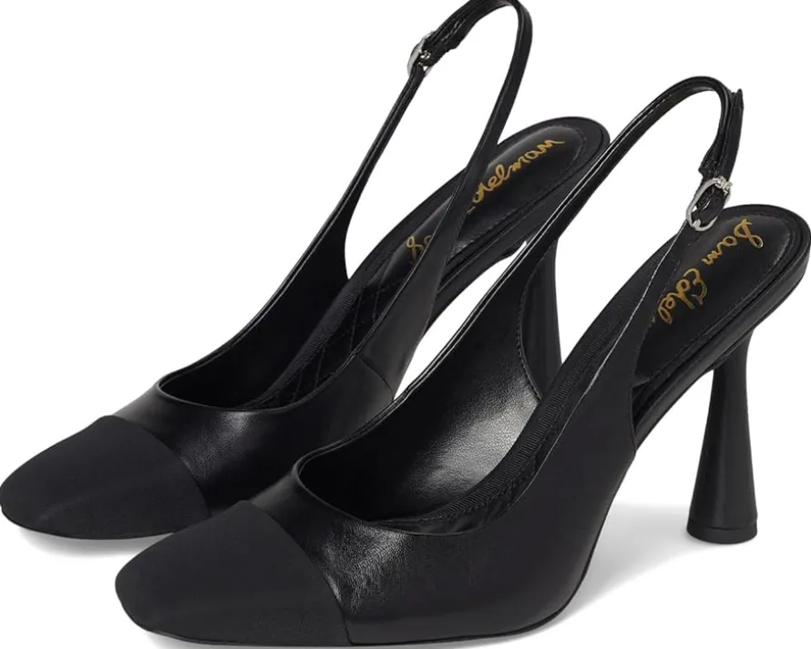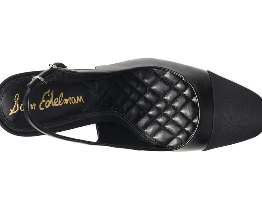 - Make your fashion statement wearing the Sam Edelman® Essa sandals. They are made of a polyester upper, faux leather insole, and polyurethane lining. The slingback strap offers added support. These heeled sandals are a great choice to pair with your party outfits and gowns.