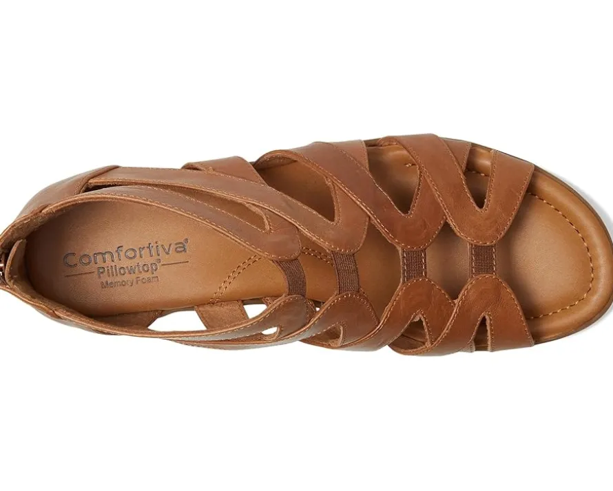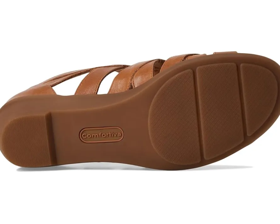 - Featuring elastic inserts in the straps, the Comfortiva® Eternia ensures a comfortable and flexible fit. The mid-heel wedge adds a touch of elegance while providing stability, and the back zipper allows for easy wear. With a lightweight and flexible rubber outsole, this sandal is perfect for all-day comfort and effortless style.