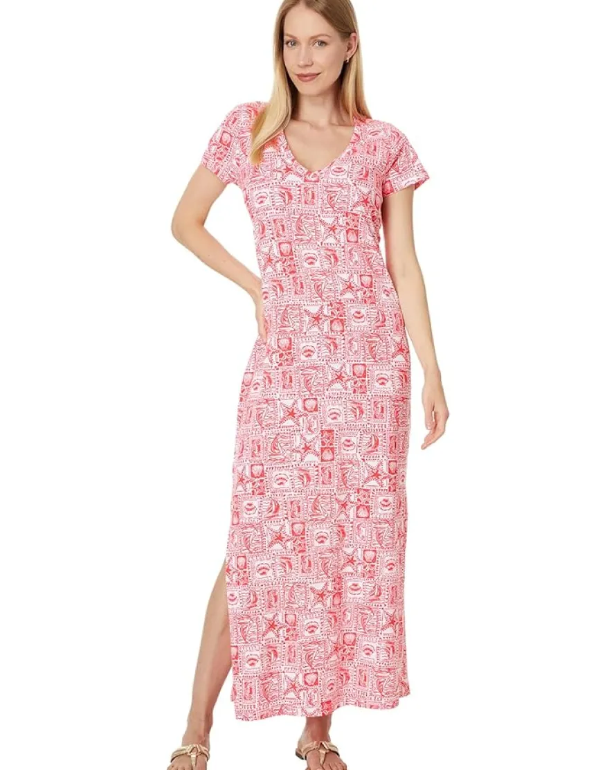 - Vacay in high-fashion charm and comfort by opting for the Lilly Pulitzer® Etta Short Sleeve Maxi Dress. It features a V-neckline, short sleeves, knee-high side slit, and maxi A-line silhouette.