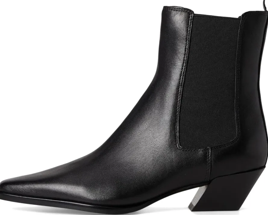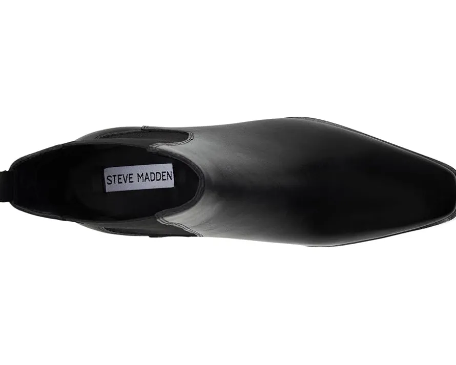 - Classic and casual, the Steve Madden® EVAN Chelsea bootie is a must-have for casual evenings or parties. This pair features a timeless silhouette with a pointed toe shape and a solid block heel. The pull-on style, ankle-high boots are crafted with a leather upper with elastic side gores, synthetic rubber lining, and rubber insole. The ankle pull tab is designed for easy donning & doffing.