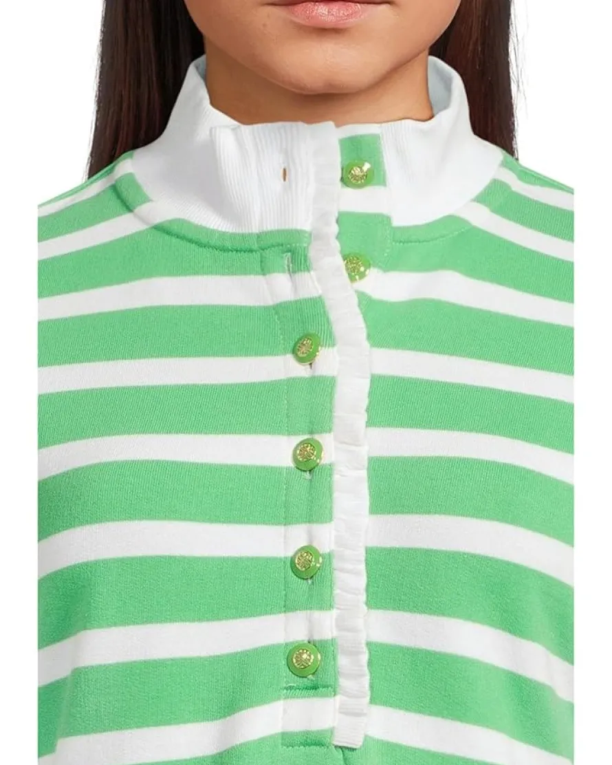 - Give your look a stunning flair with the Lilly Pulitzer® Evangeline Dress. This straight-fit silhouette features long sleeves with rib-knit collar and cuffs, providing a cozy and polished look. The ruffle detail at the front button placket adds a touch of feminine charm.