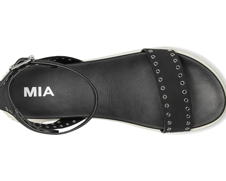 - Designed with an anatomical footbed for cushioned support, the MIA™ Evelin sandals are a great choice to style up your looks and outfits. The faux leather upper features shiny grommets and an ankle strap with an adjustable buckle closure. These platform sandals are made of a faux leather insole and lining, making them comfortable to wear for long hours.