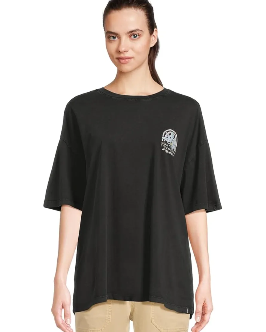 - Add comfort to your basic everyday routine wearing Prana® Everyday Graphic Oversized Tee. The oull-on style tee features a ribbed crew neck, forward shoulder seams, short sleeves, prAna® graphic at the chest & oversized prAna® graphic at the back, and a straight hem. The exterior woven label placed on the wearer’s left front hem adds a genuine feel.