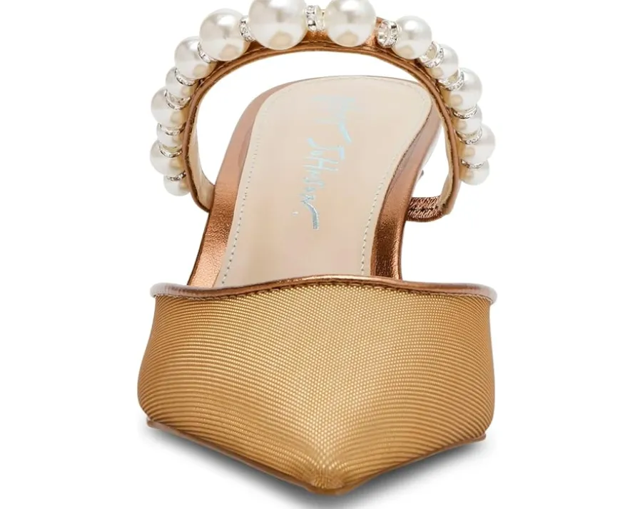 - It’s time to give a fashionable lift to your formal as well as dressy outfits with the Blue™ by Betsey Johnson Evey Heels. All beauty of these pointy toe pumps lie in the pearl embellished instep strap and the striking kitten heel with pearl detailing. The shoes are made with a mesh upper paired with a synthetic lining and a padded insole.