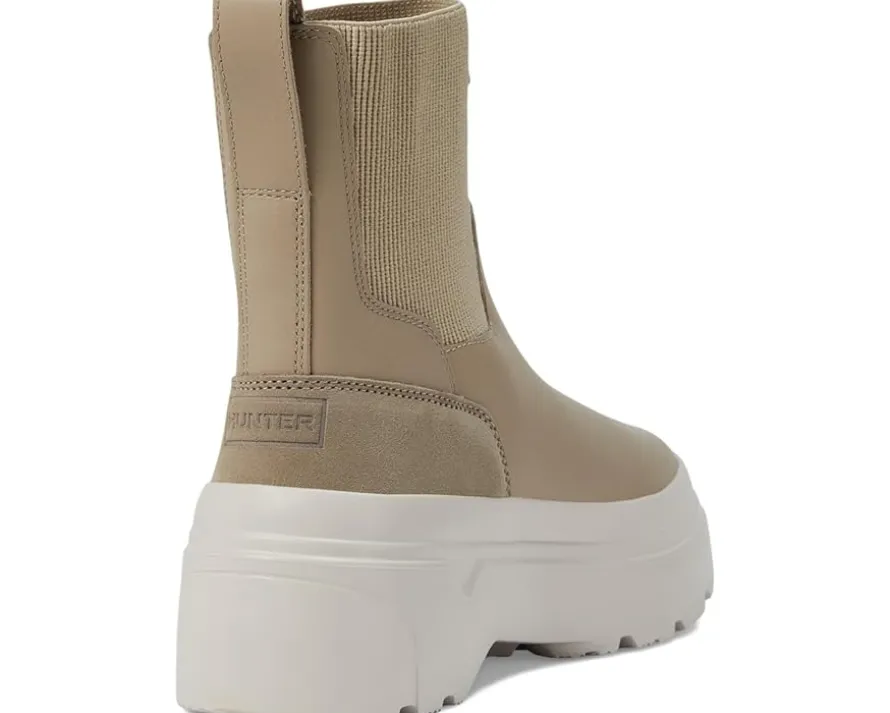 - Discover the joy of urban street escapes wearing Hunter® Explorer Chelsea Flatform Boots. The pull-on footwear features rubber upper construction with recycled polyester lining, footbed, and flatform midsole.