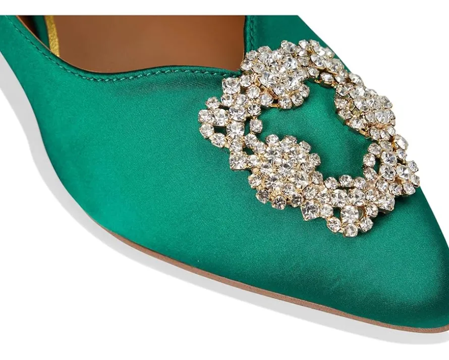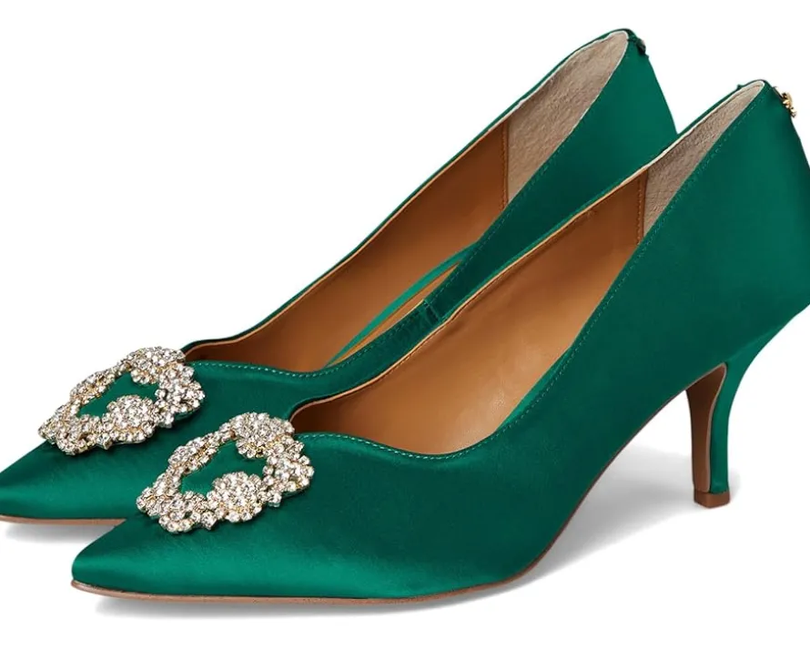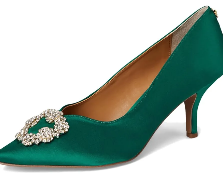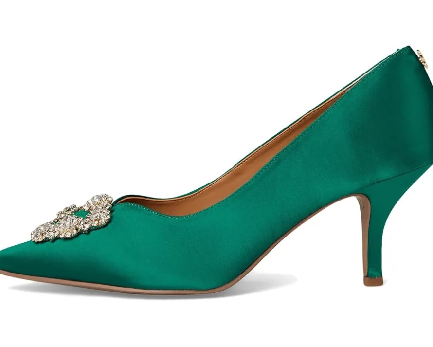 - Revamp your look by complementing outfits with these bold and beautiful J. Renee® Ezara Pumps. This year-round women’s fabric pointy toe pump has a memory foam & latex insole, synthetic lining, and a satin fabric upper. The embellished brooch detail on the vamp and stiletto heel amp up the style game.