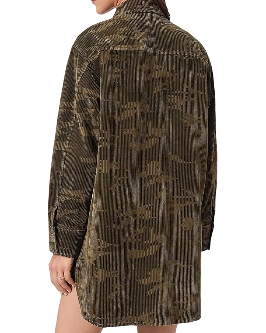 - Give a trendy update to your wardrobe by adding to it the stylish AllSaints™ Faye Flocked Dress. The mini dress features a collared neck, a full front-button closure, long sleeves with buttoned cuffs, and two oversized button-flap pockets on the chest for added functionality. The refined allover print and shirttail hem complete the look.