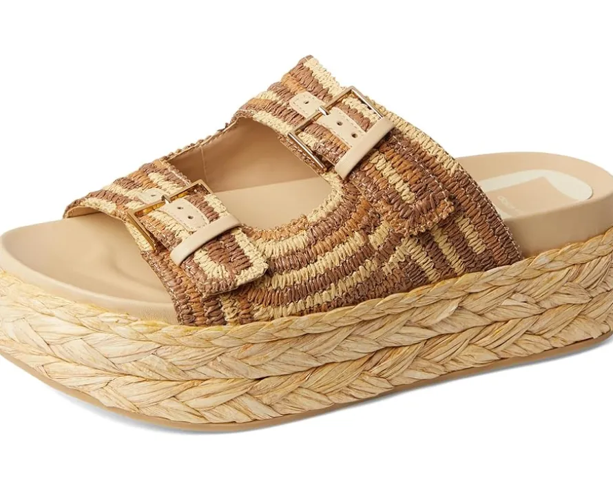 - Designed with an espadrille-inspired synthetic outsole, the Dolce Vita® Fayln sandals are perfect for styling up your looks and outfits. Their woven raffia upper features dual buckle straps for a secure fit. They are made of a contoured footbed and water-based leather lining. These heeled sandals will keep you comfortably and stylishly on your feet all season long.