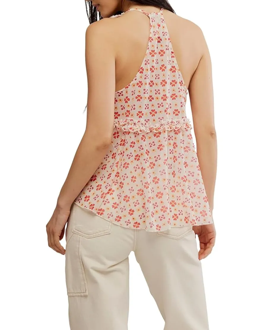- So us in every way, this ruffle-adorned Fearless Knit tank by Free People™ is featured in a flyaway design and a creepy sheer knit for the perfect top that can truly do it all. With its relaxed, flowy fit, this versatile piece stuns with a V-neckline, racerback cut, and delicate ruffle trim. The open-front design with a tie closure and pointed hem adds a flirty finish, making it just as perfect for laid-back layering as it is for dressed-up moments.