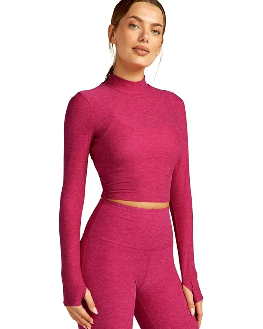 - The Beyond Yoga® Featherweight Moving On Cropped Pullover is ideal for both regular work out sessions as well as casual strolls through town. This stylish pullover comes with a featherweight quality and features a mock neck, long sleeves with thumbholes, and a cropped silhouette.