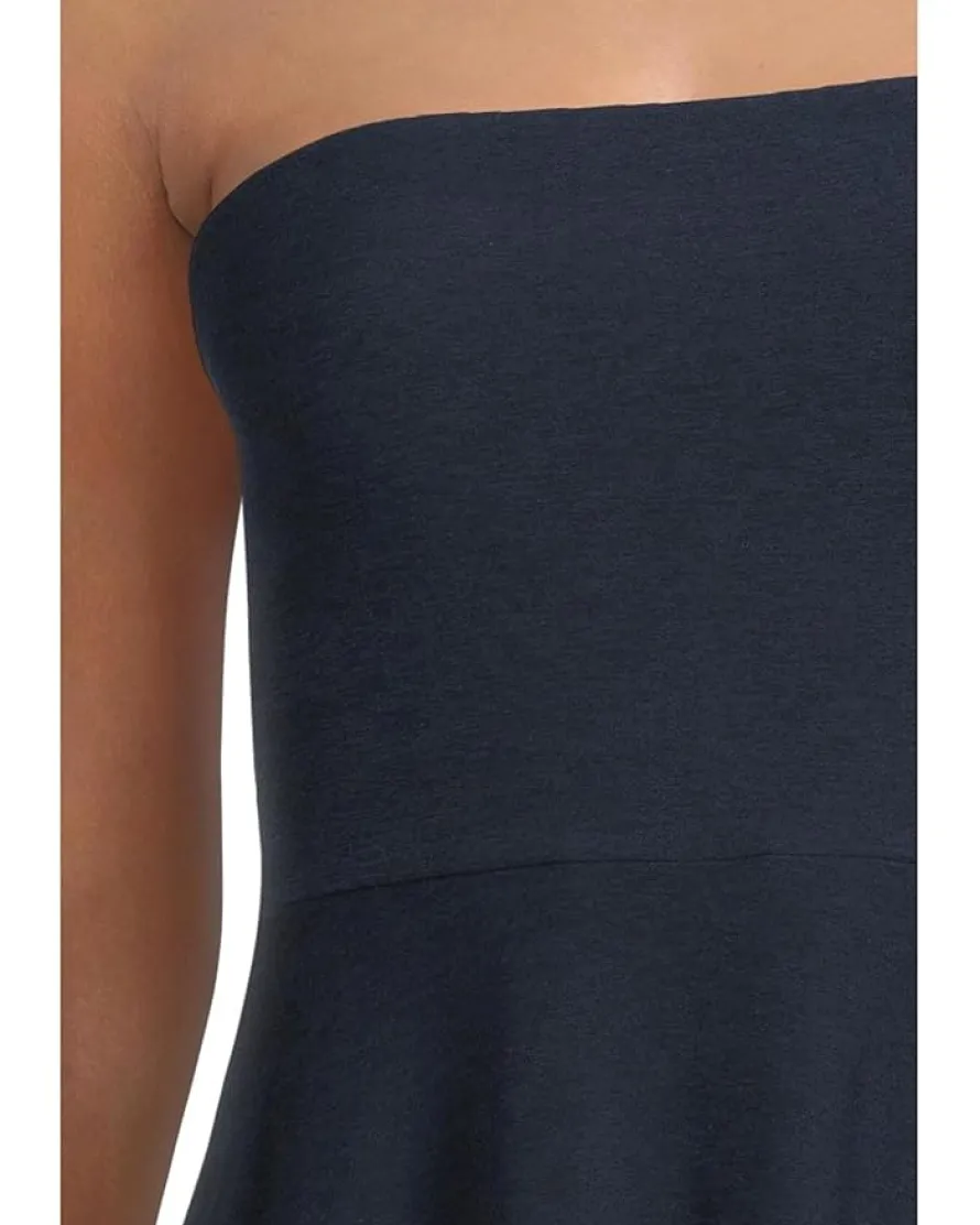 - Easy dressing, no strings attached. The new strapless dress features a built-in bra, and flared skirt. Find yourself wearing this little number just about every day for every occasion, from brunch to beach, errands to evening plans.