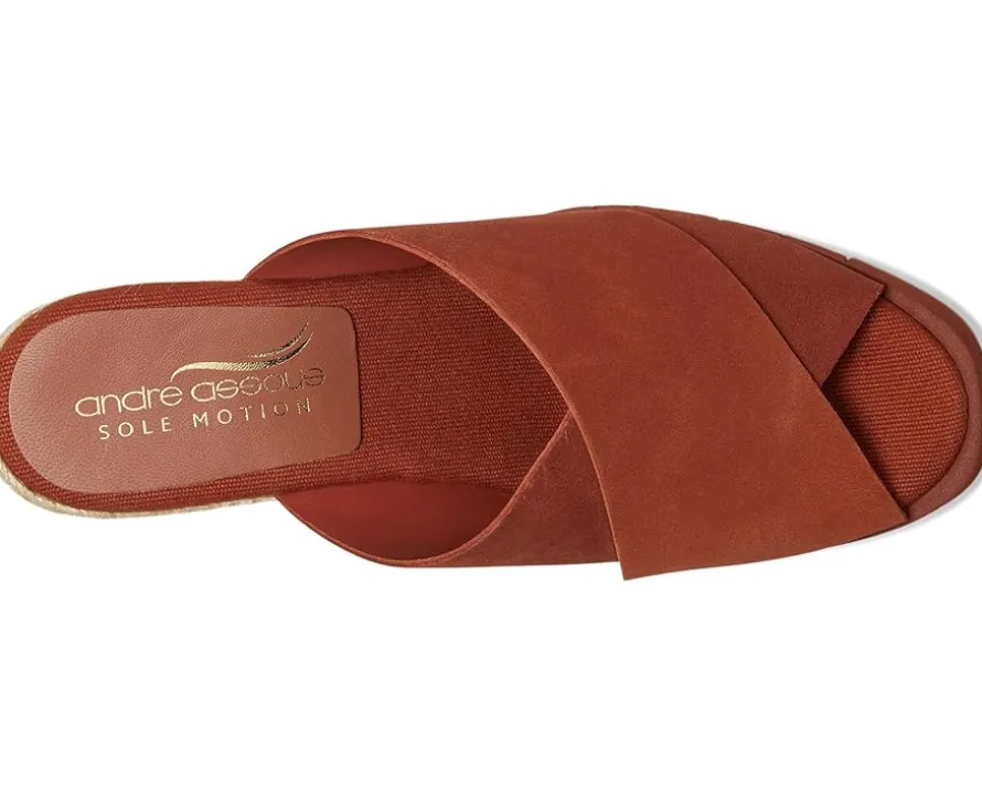 - Take a stroll through the town or head out for daily commutes in comfort and style wearing Andre Assous™ Filo Sandals. The slip-on style sandals are crafted with a leather upper, lining, and insole. The jute-wrapped wedge heel detail elevates your look effortlessly.