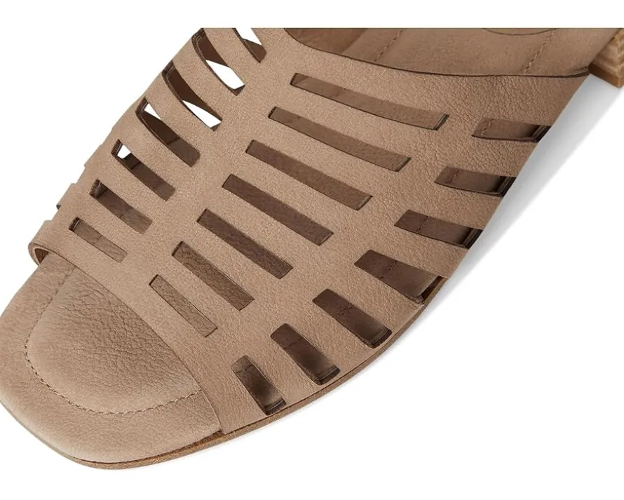 - Walk with grace wearing the Eileen Fisher® Fira Slide. Featuring open square toe, low heel slide with single band upper that has cutouts all around. Crafted from leather upper, lining, insole and sock for comfort.
