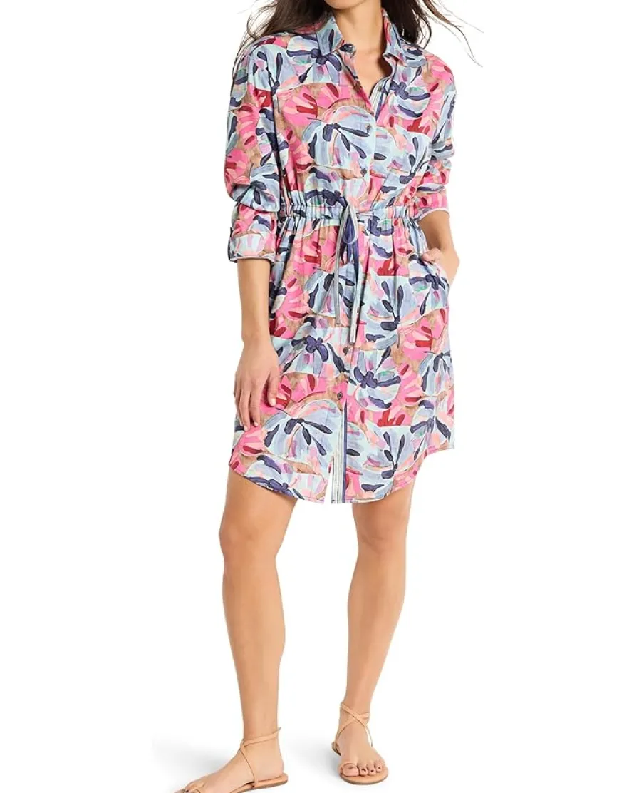 - NIC+ZOE™ Firework Foliage Syd Dress is the perfect combo of playful style and functional versatility. Designed with fun utility details, it features three-quarter-length roll-tab sleeves and customizable cuffs for a personal touch. The elasticized waist with an adjustable self-tie ensures a flattering fit, while the full button-down front closure allows it to double as a tunic when worn open. Perfect for casual days or elevated outings, this dress adapts effortlessly to your look and that day’s weather forecast.