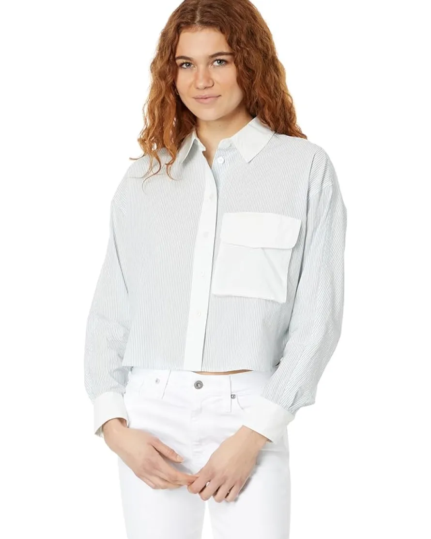 - Featuring a vertical striped print all over, get ready for work or a business meeting by wearing the Madewell® Flap-Pocket Crop Button-Up Shirt in Poplin. The breathable and lightweight cotton fabric of the shirt takes your comfort to the next level. This striped shirt features a front buttoned closure that offers a secure fit. Flaunt your great style and fashion sense by wearing this button-down shirt.