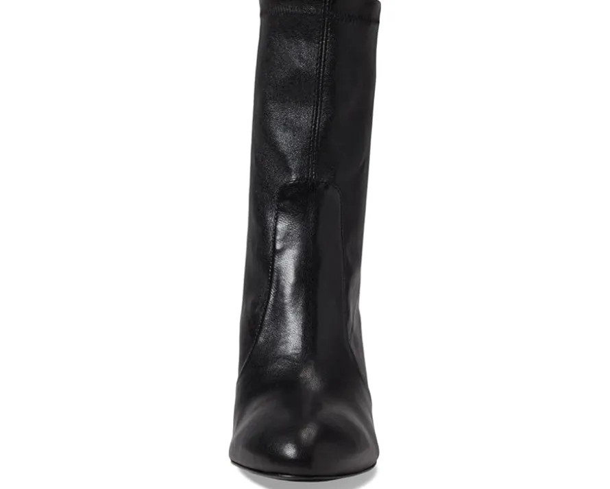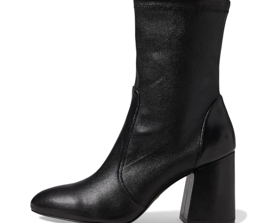 - Take every stpe in the most stylish way wearing the uber-stylish Stuart Weitzman® Flareblock 85 Stretch Bootie. The mid-calf length boots feature an almond toe shape, block heel and easy pull-on style. Crafted with a leather upper, leather and textile lining and insole, these boots are a smrt addition to your shoe collection.
