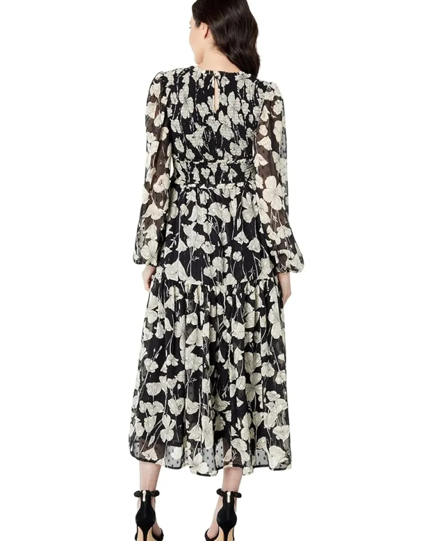 - Enjoy the breezy vibes in the charming floral print MOON RIVER™ Floral Smocked V-Neck Midi Dress.