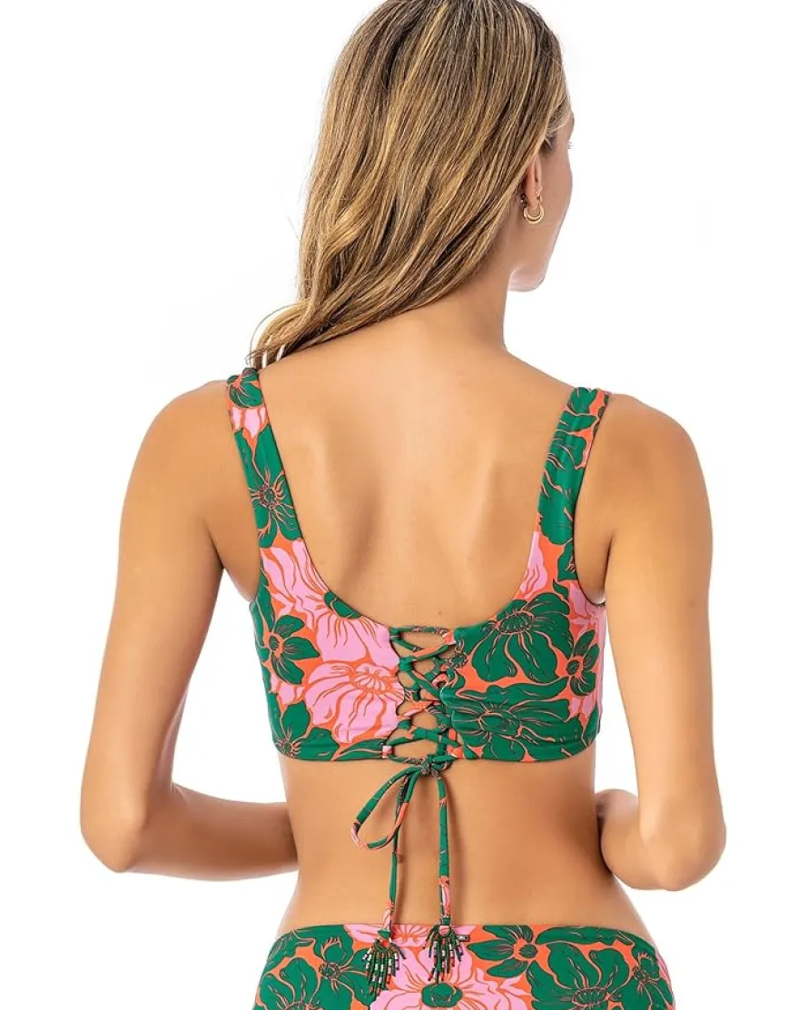- Slay a stylish and feminine look for a beach day or a pool party wearing the Maaji™ Floral Stamp Guinea top. The swimwear top has a reversible construction with a deep scoop neckline, fixed straps, grommets, and a lace-up front detail. The bikini top is a 4-way piece and features an intricate floral print that adds a feminine touch to the aesthetics.