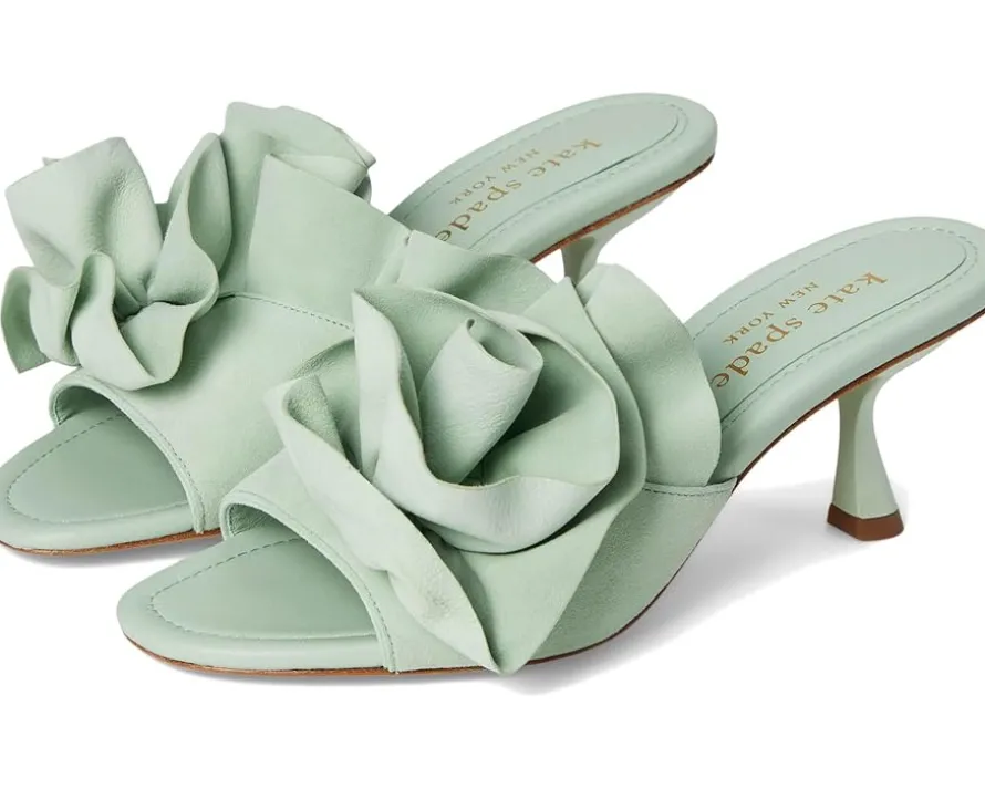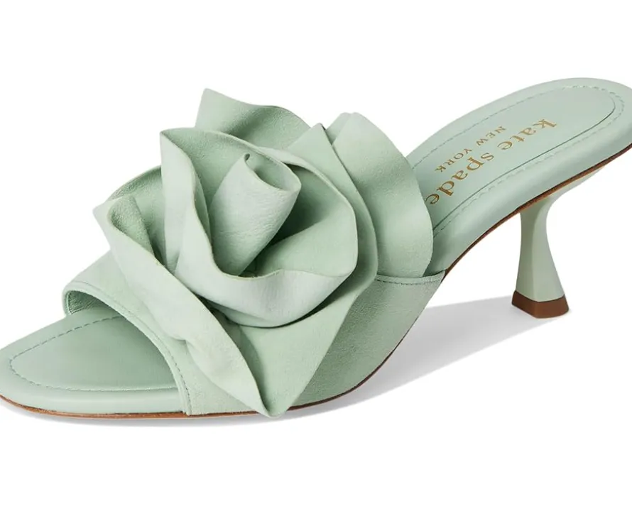 - Up your footwear game adding this Kate Spade New York® Flourish slip-on to your collection. It has leather upper with a 3D flower strap and slide on style. Lined with leather the slip on features open toe, leather insole and wedge platform.