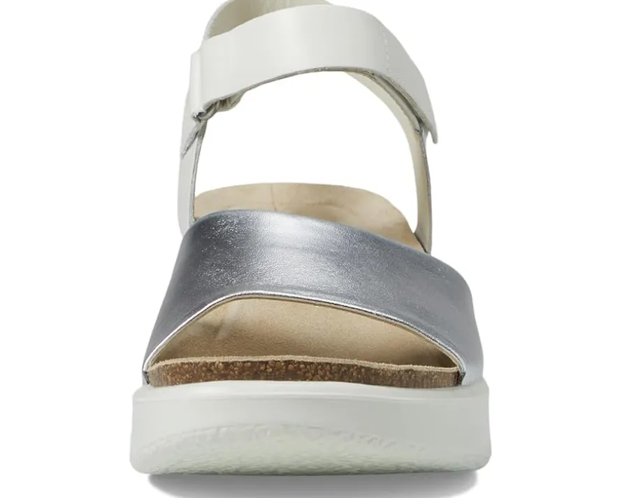 - Made with soft brushed nubuck, this version of the ECCO® FLOWT WEDGE CORK Sandal has a single wide strap across the top of the foot and a fully adjustable ankle strap. Chic and understated, one of the styles features an edgy snake-print pattern, while the wedge heel on all of them offers comfort and height.