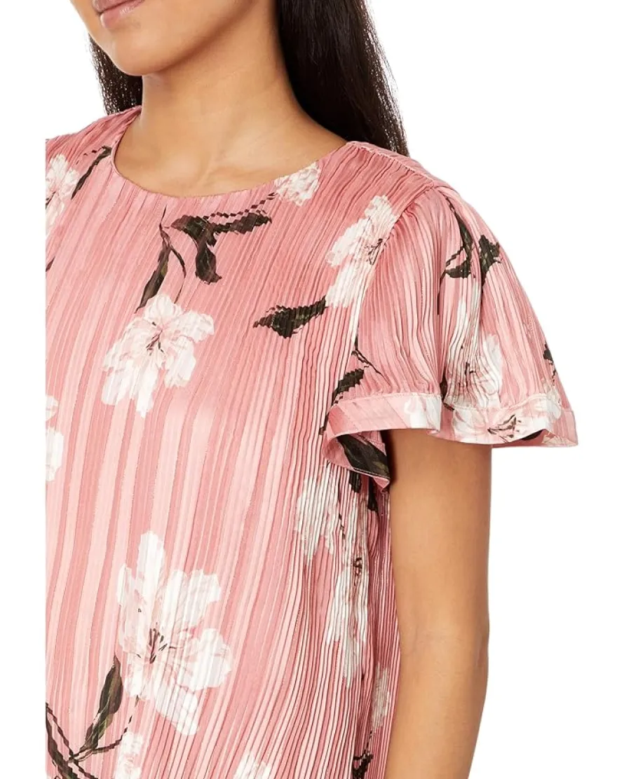 - Elevate your charm with this floral print CeCe™ Flowy Pleated Blouse, a darling addition to your wardrobe that exudes both elegance and cuteness. This pullover lurex stripe top fetures crew neckline and flowy short sleeves.