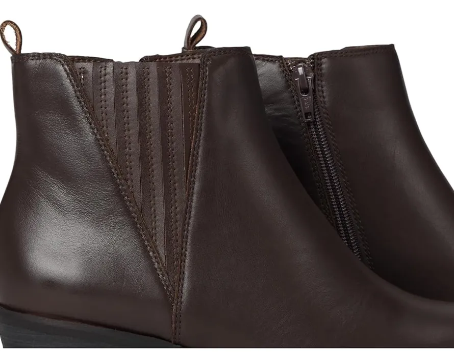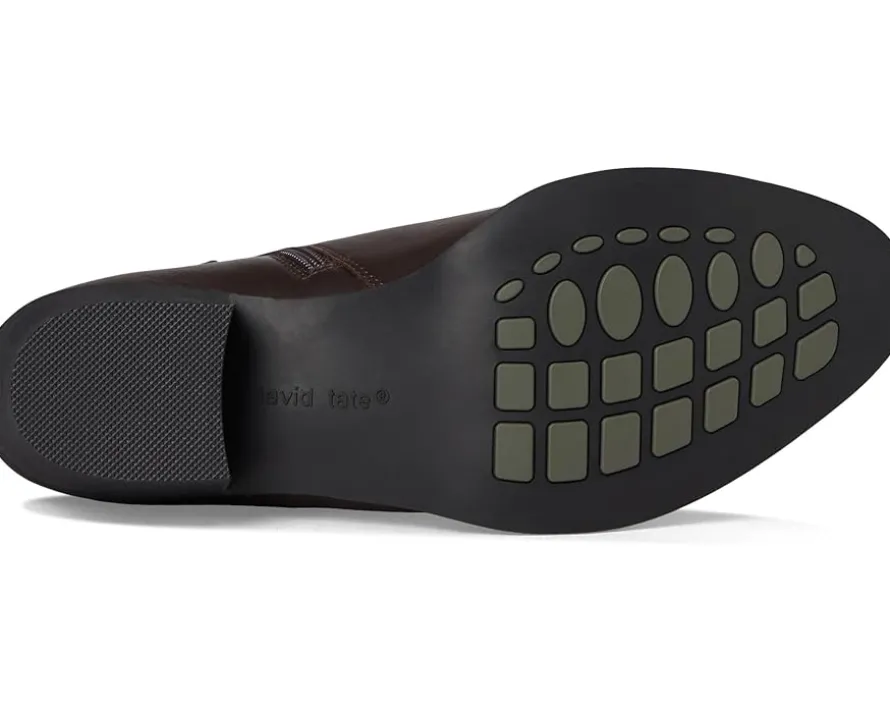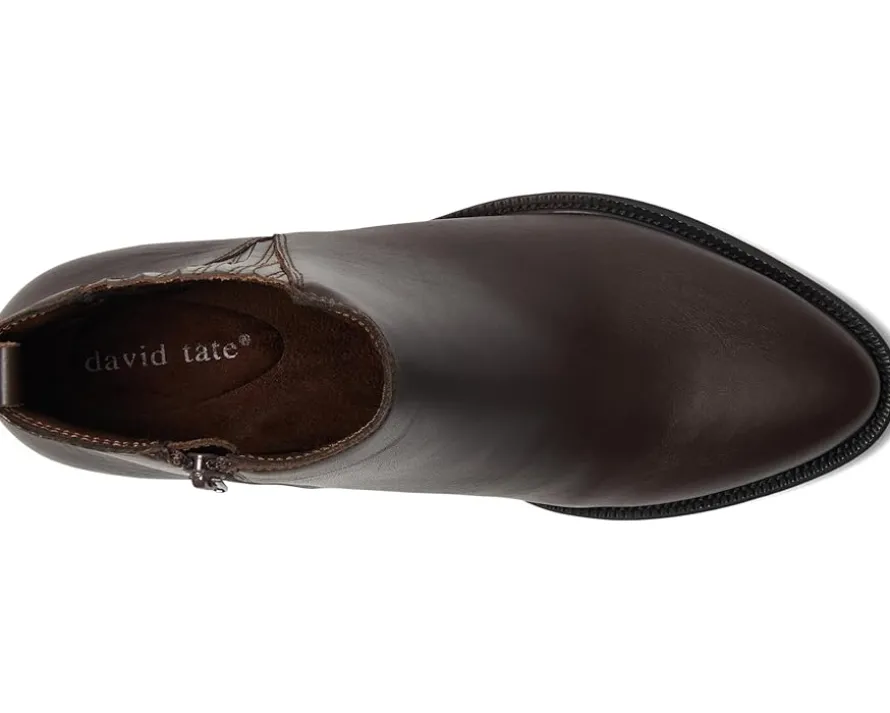 - Featuring stacked block heels, an elastic side panel, and zippered side closure for easy on and off, the David Tate® Focus boots are stylish ankle boots with a polished leather western look. Made with a soft leather upper, these heeled boots are durable for everyday wear. The removable contoured rubber insole provides ultimate support and comfort while the fabric lining makes them a comfortable footwear choice.