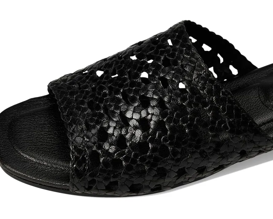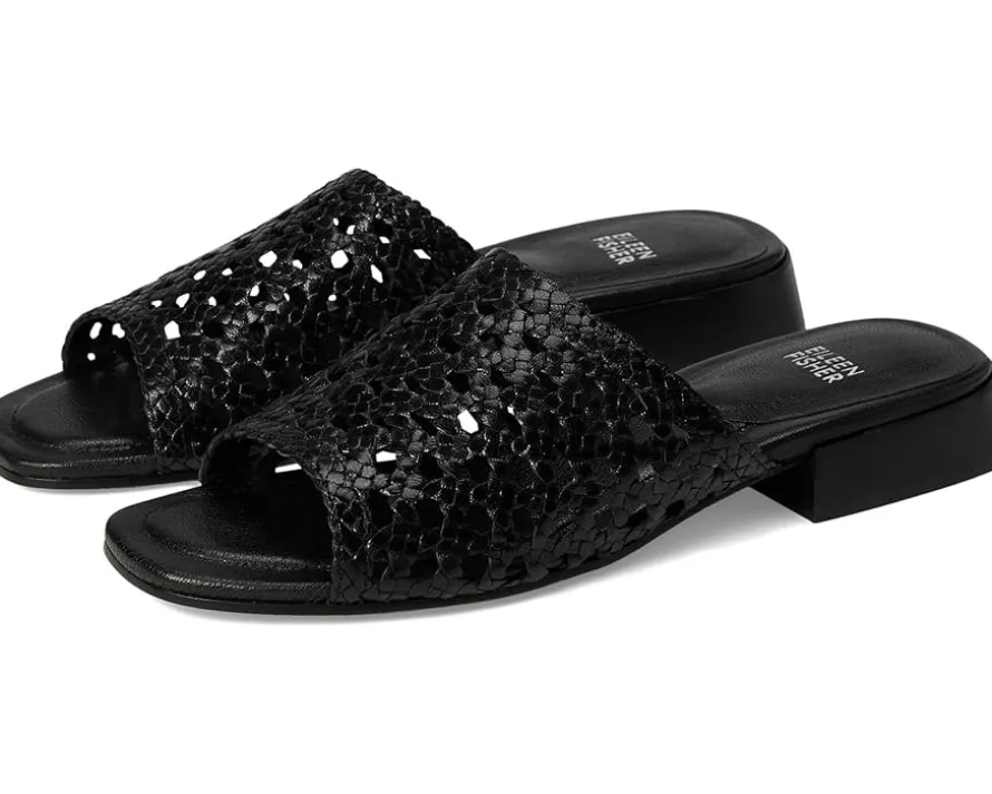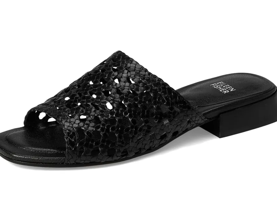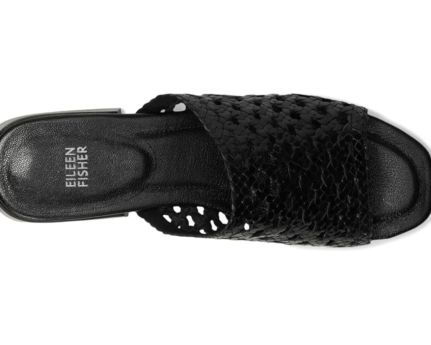 - Effortlessly chic Eileen Fisher® Folie Slide. Featuring a beautifully woven leather upper, this elegant slide brings a touch of artisanal texture to every step. The padded EVA insole offers cloud-like comfort, while the soft leather lining wraps your foot in pure luxury. A sleek open toe keeps things breezy, and the sturdy leather block heel adds the perfect lift without compromising comfort. Just slip them on and go – whether you’re sightseeing in style or dressing up for dinner. From casual strolls to jet-set getaways, this versatile favorite transitions flawlessly from day to night. Durable leather outsole ensures long-lasting wear, making it the ideal travel companion.
