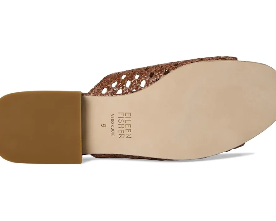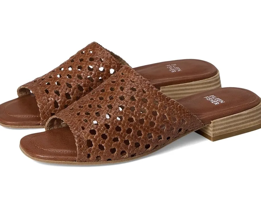 - Effortlessly chic Eileen Fisher® Folie Slide. Featuring a beautifully woven leather upper, this elegant slide brings a touch of artisanal texture to every step. The padded EVA insole offers cloud-like comfort, while the soft leather lining wraps your foot in pure luxury. A sleek open toe keeps things breezy, and the sturdy leather block heel adds the perfect lift without compromising comfort. Just slip them on and go – whether you’re sightseeing in style or dressing up for dinner. From casual strolls to jet-set getaways, this versatile favorite transitions flawlessly from day to night. Durable leather outsole ensures long-lasting wear, making it the ideal travel companion.