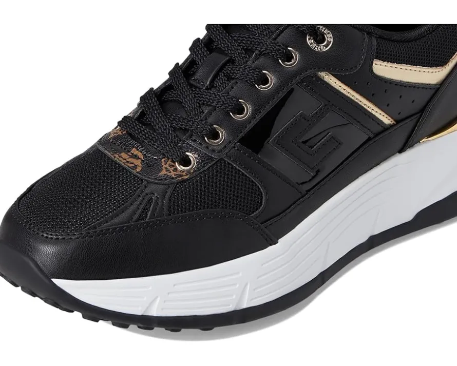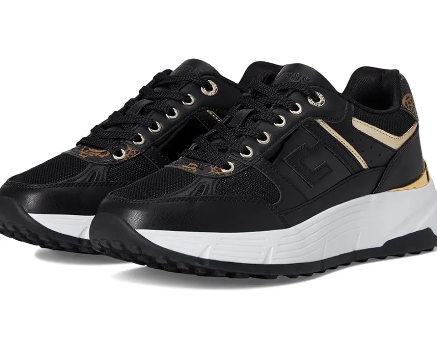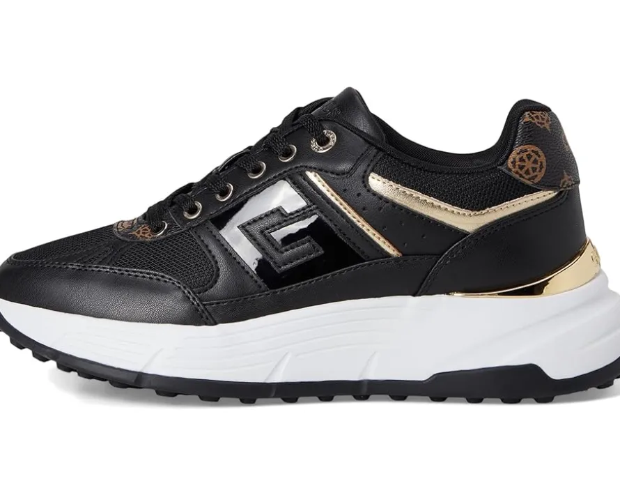 - The Guess® Fonzi takes you to a new level of style and comfort. This platform, lace-up sneaker features an oversized G logo and a gold rand on the heel that keeps you on trend while staying comfortable. Crafted from rubber upper, synthetic lining, and synthetic sock, it comes with round toe, and low top silhouette.