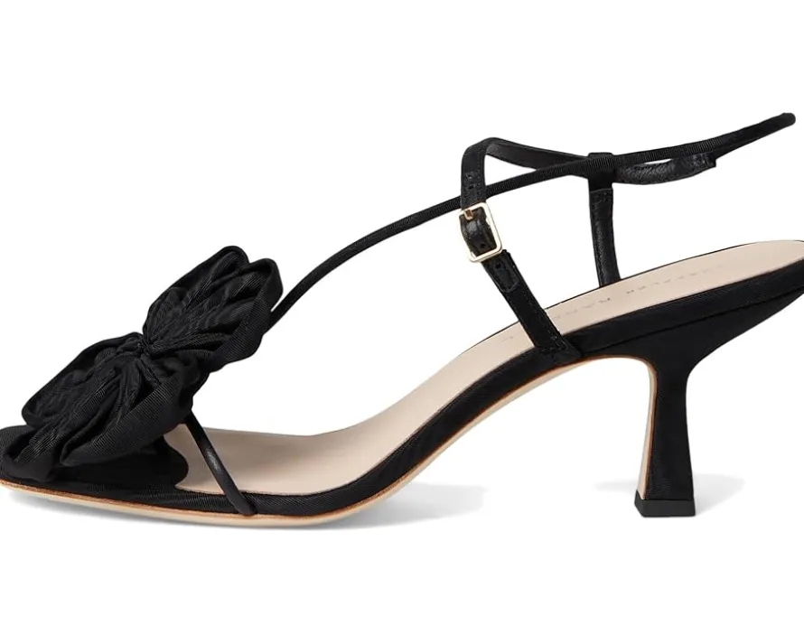 - Floral artistry, underfoot: Loeffler Randall® Frank Flower Applique Heeled Sandals: event-ready elegance. Crafted with a soft wool upper, these beauties feature a delicate floral applique that adds a whimsical, feminine touch. The buckle ankle strap ensures a secure fit, while the kitten heel delivers effortless sophistication with all-day comfort. Lined with smooth leather and cushioned with a viscose insole, these sandals offer a luxe feel with every step. Finished with a sleek leather outsole, Frank is the go-to choice for weddings, garden parties, and any occasion that calls for romance and charm.