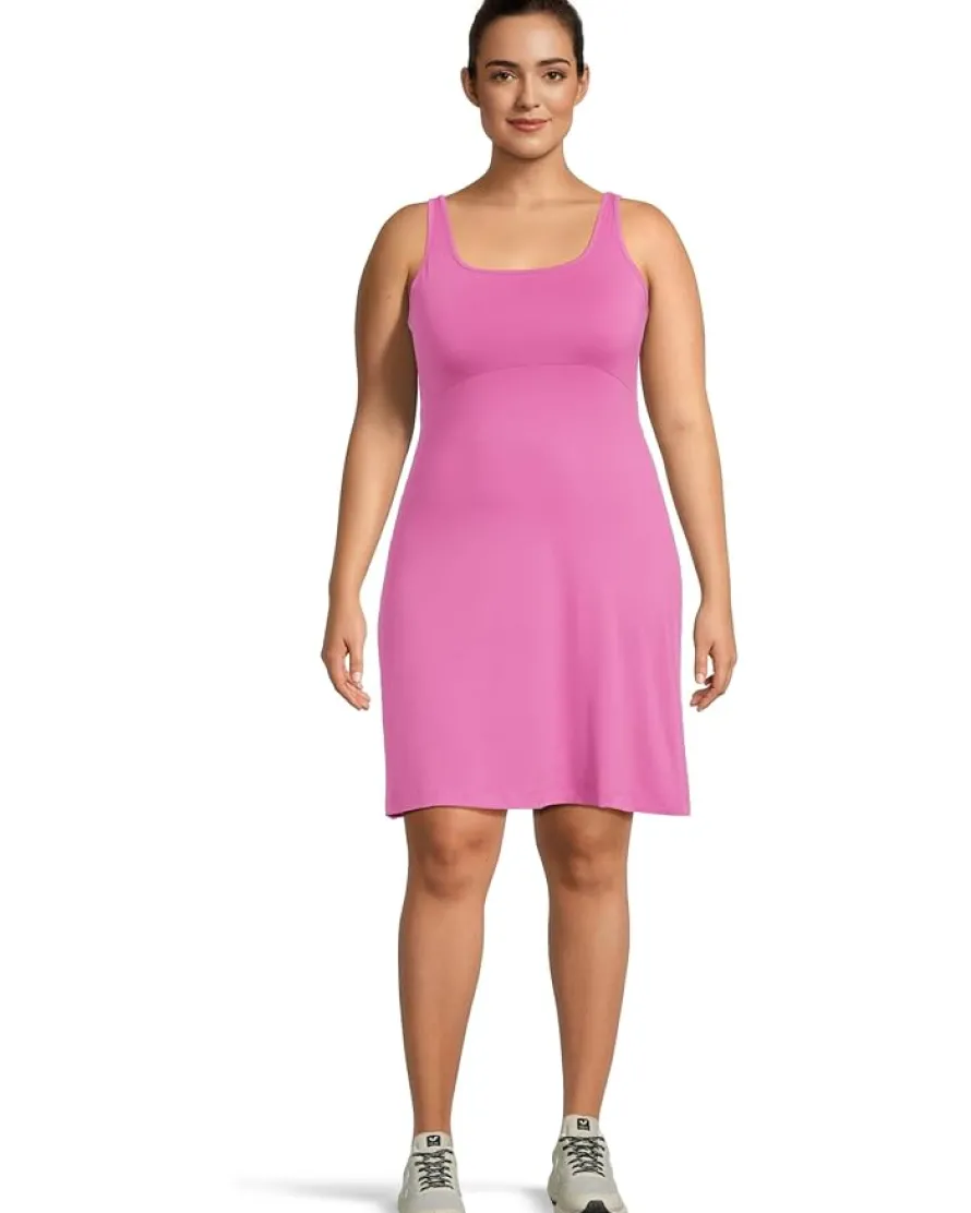 - Tank dress features a seamed empire waist and A-line silhouette.