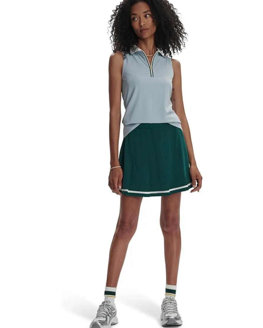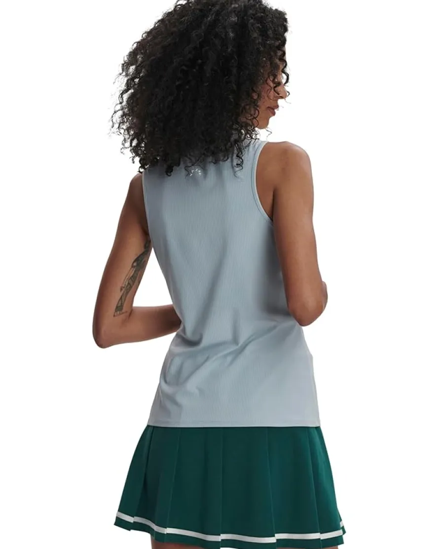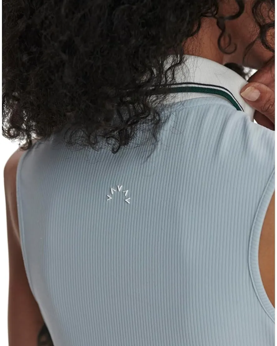 - Stay active, stay stylish, and let every day be your best in the Varley Fritton Performance Tank. This athletic-fit tank is crafted with a ribbed bodice that hugs your figure, offering the perfect blend of comfort and performance. Designed with a modern collared neck and sleeveless cut, it’s ideal for those who move with purpose and elegance. The half-zippered closure adds a touch of sophistication, while the contrasting stripe detail collar elevates the look. Finished with a gold-tone zipper for a refined aesthetic, this pull-on style ensures effortless wear and lasting style.