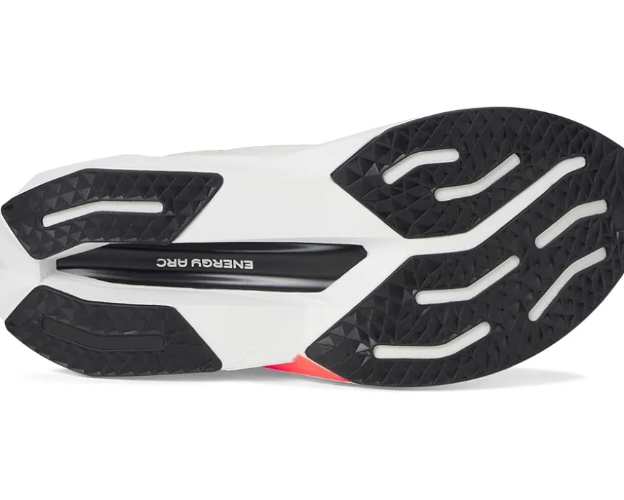 - The New Balance® FuelCell SuperComp Trainer v3 is a high-performance running shoe built for half- and full-marathon training, combining plush cushioning with energy-efficient design. It features a FuelCell midsole foam with approximately 3% bio-based content, offering a propulsive feel. The Energy Arc system integrates a sport-specific carbon fiber plate with strategic midsole voids to maximize energy return, while the angular midsole design helps reduce overall weight. A durable rubber outsole ensures superior traction across varied surfaces, making it ideal for long-distance runners seeking comfort and speed.