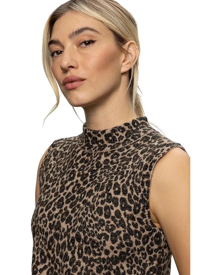 - Add a touch of fun to your look choosing the Sanctuary™ Fuzzy Shell top! Featuring a ribbed mock neckline and a playful animal print pattern, this top is a must-have for any fashion lover. The sleeveless style and straight hem offer a flattering fit that can be dressed up or down for any occasion.