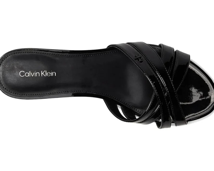 - Amp up your style in the Calvin Klein® Gabbie dress sandals. These heeled sandals are designed with a faux leather upper, cushioned footbed, and polyurethane lining. They feature an open, round toe shape, slip-on silhouette, and crisscross straps. These slip-on heels will be a staple in your wardrobe.