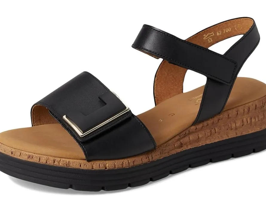 - Classic meets flamboyant charm when wearing the Gabor® Gabor 62.700 wedge sandals. This low-top footwear features leather upper construction and adjustable hook-and-loop closure.