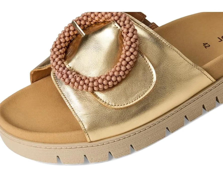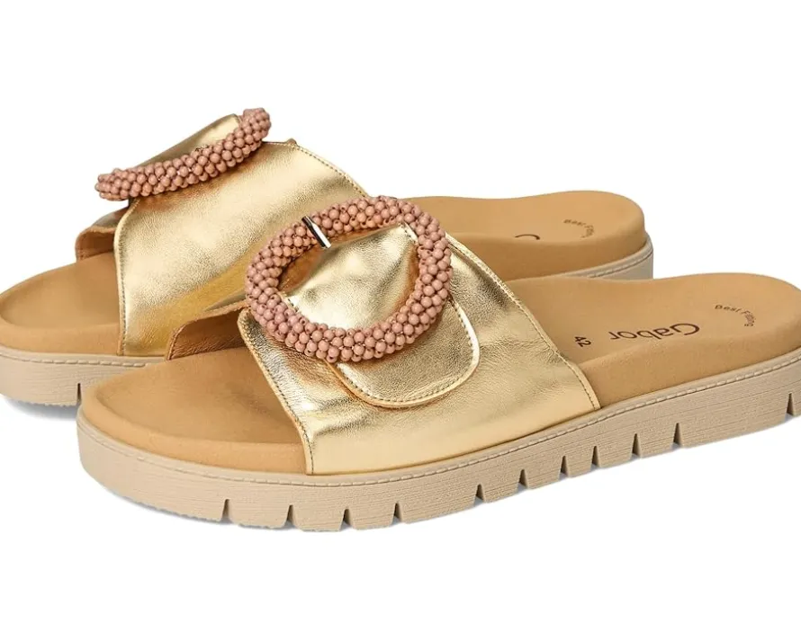 - The Gabor® Gabor 63.745 features a subtle heel, offering a sophisticated and comfortable boost in height. A rip tape fastening disguised as a buckle trim rests atop the sandal, providing a secure fit to wear through the day!