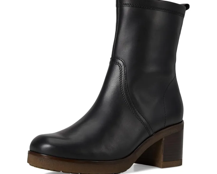- The Gabor® Gabor 72.851.57 ankle boot is crafted with a smooth leather upper and features a stacked block heel. A tread rubber outsole offers subtle grip and elevation. A zippered side closure ensures easy wear, while the streamlined round toe silhouette makes it a versatile choice for seasonal styling.
