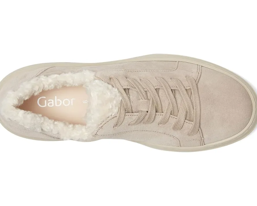 - The Gabor® Gabor 73.221.12 combines cozy comfort with elevated style. Set on a soft flatform sole, it offers subtle lift without sacrificing ease. The lace-up design ensures a secure fit, while the faux fur lining adds plush warmth and a touch of luxe texture.