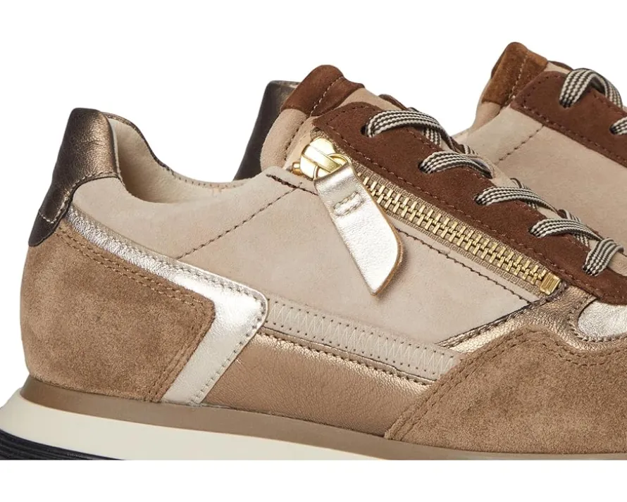 - The Gabor® Gabor 76.378.82 is a fancy sneaker with an easy-on zipper and laces. Made with suede upper and leather lining, these shoes are both stylish and durable. The cushioned, supportive insole ensures all-day comfort, while the flexible EVA outsole allows for easy movement.