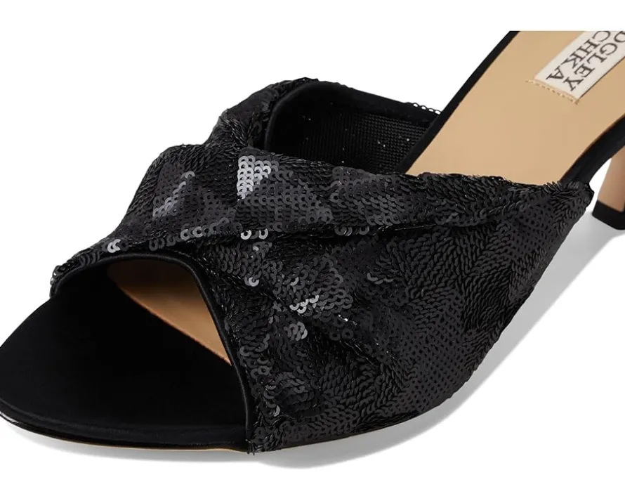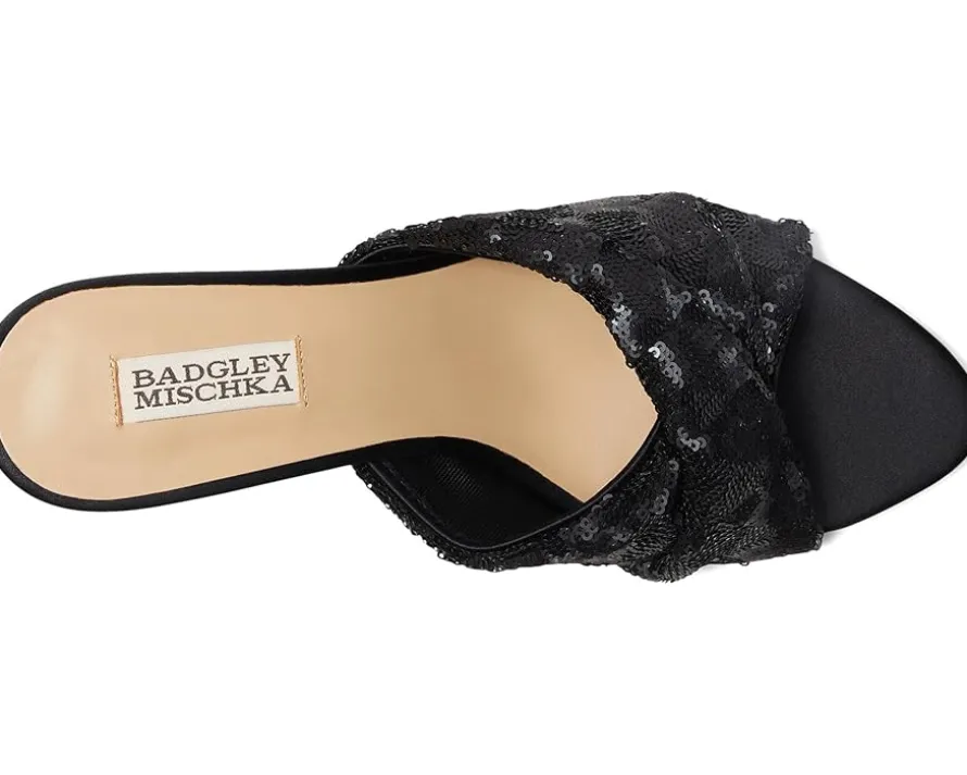 - Make a chic statement wearing the Badgley Mischka® Gailea heels! With cross-band silk upper shimmering with sequins, these heels are both elegant and eye-catching. The breathable leather lining and leather insole ensure a comfortable fit, while the low-top style and slim stiletto heel complete the look with a touch of glamour.