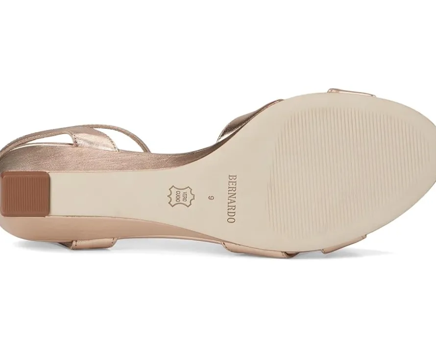 - Learn from history. The Bernardo® Garcel sandals are designed with an iconic T-strap leather upper with modern block heels and a padded footbed for elevated, everyday style. These heeled sandals are made of a leather insole and lining. The adjustable ankle strap ensures a secure fit.