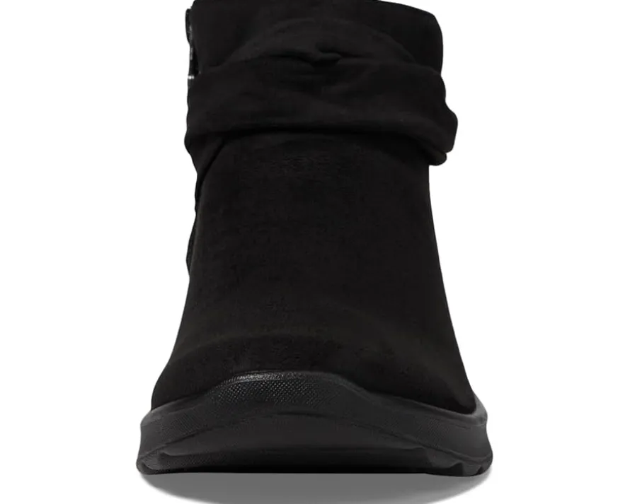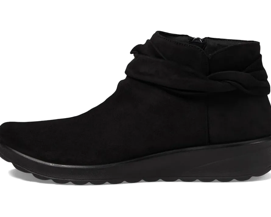 - Strut with confidence wearing the Bzees® Gemma, designed with perfection so you’ll feel weightless, energized and free. Crafted from stretch fabric upper with partially recycled linings and topcloth with a round toe, it features side zippered closure with braided detail, low heel, and a foam insole.