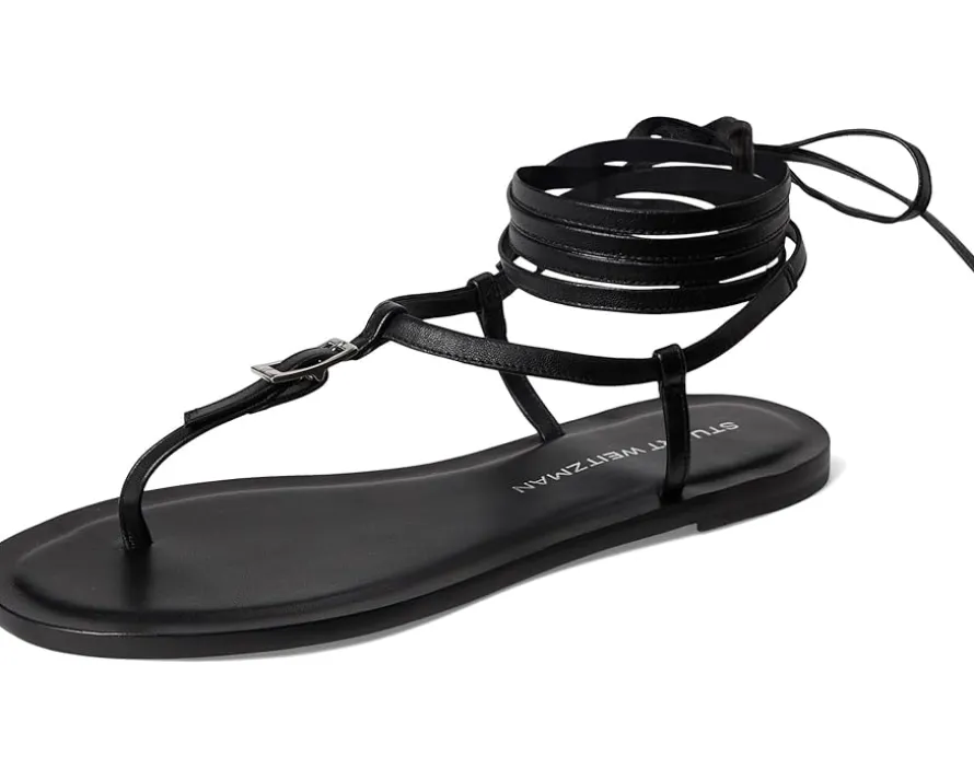 - Step out in effortless sophistication this warm weather season in the Stuart Weitzman® Georgie Lace-Up sandals. Crafted from a leather upper, these sandals feature a strappy lace-up with a tie closure, buckle detailing at the thong strap, round toe silhouette, leather lining, and leather insole.