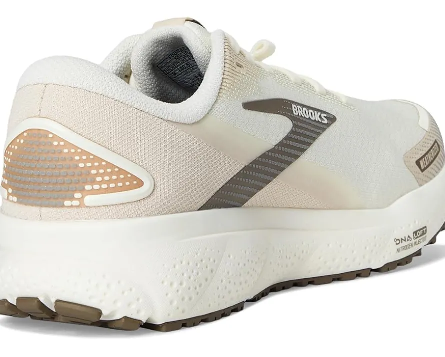 - Feel closer to the ground with the Brooks® Ghost 16 Weatherized, designed for those who prefer a barefoot-inspired experience. Engineered air mesh upper blends stretch and structure with just-right breathability, new material is breathable while providing necessary warmth for cold-weather runs. Water resistance helps keep out snow and rain, and reflective hits improve visibility in low-light conditions.