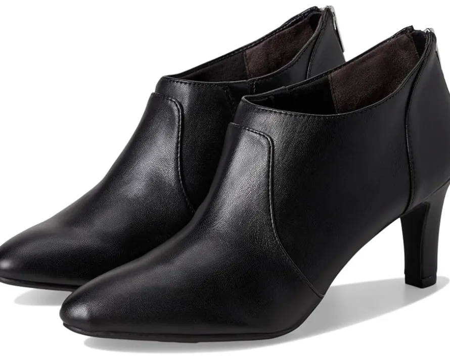 - Wear with everything. Pair with everything. These ankle boots for women will perfectly fit you and anything in your closet. Faux leather upper with an almond toe and back zip for easy on/off. Linings crafted with partially recycled materials. Soft System® comfort package provides all-day support, flex, and cushioning. Traction sole provides you with extra stability.