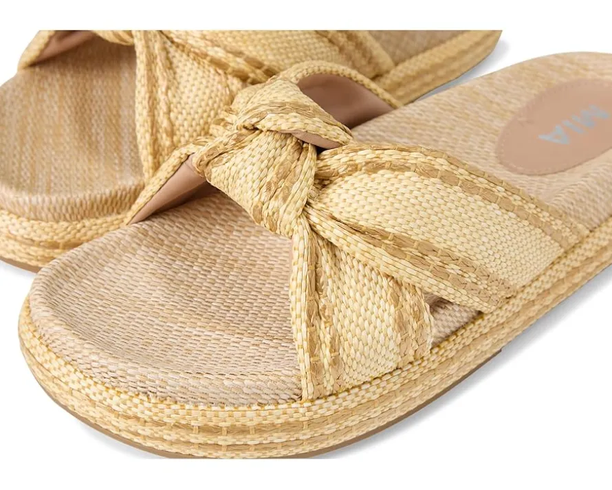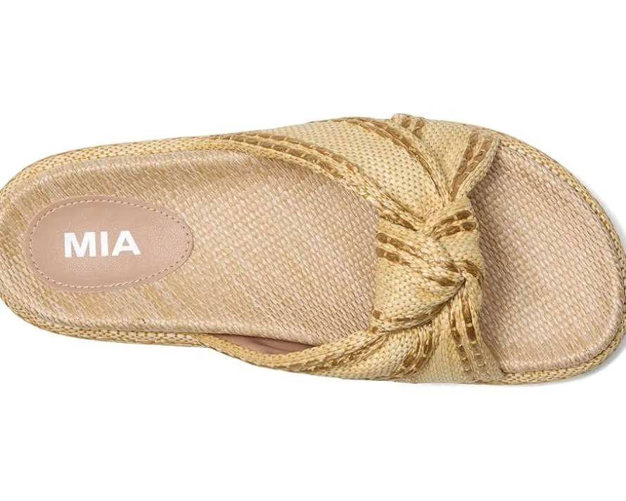 - Add a pop of glam to your outfit with the MIA™ Giade. This slip-on footwear is designed with an open toe and knotted strap detailing.